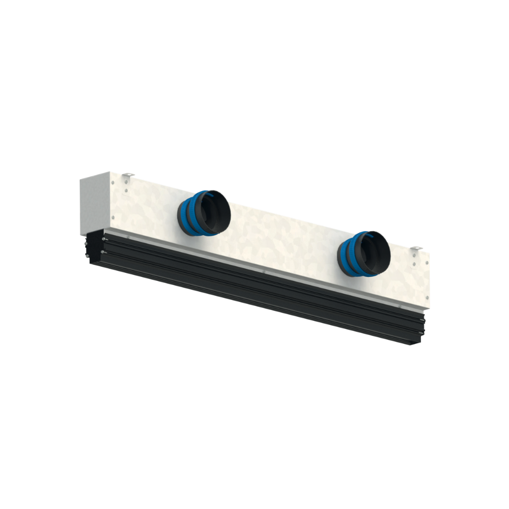 Ceiling or wall installation for air supply and return. Possibility of vertical throw and lateral throw with Coanda effect.